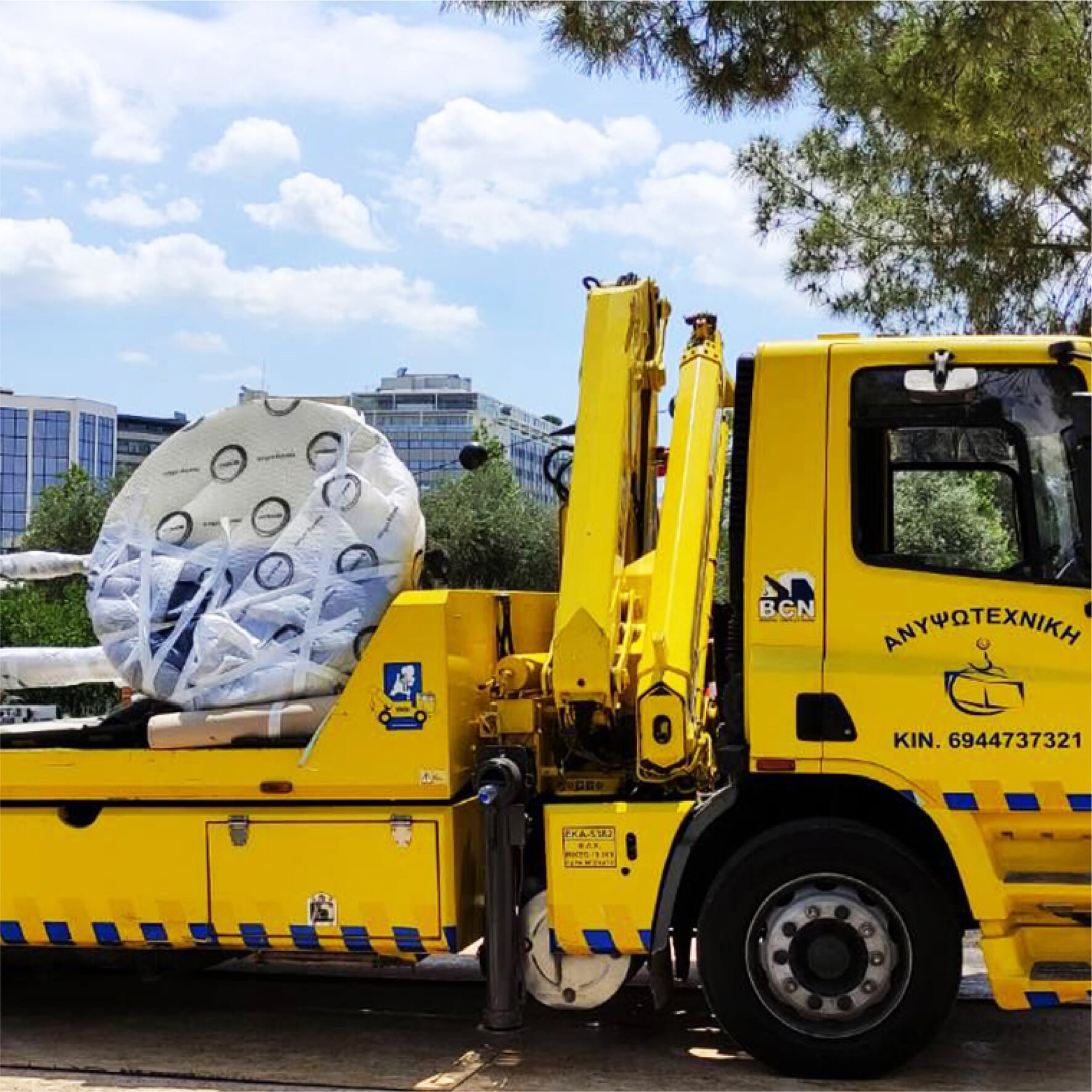 Τα φορτηγά – παπαγάλοι συνδυάζουν τη μεταφορά με την ανύψωση φορτίων. Οι έως και 16 υδραυλικές επεκτάσεις εξασφαλίζουν υψηλή απόδοση εργασιών, ενώ παράλληλα λειτουργούν με ασφάλεια και εξαιρετική ακρίβεια. Ο υπάρχων στόλος έχει τη δυνατότητα ανύψωσης 5 έως 20 τόνων σε ακτίνα 20 έως 36 μέτρων, ενώ με την προσθήκη fly jib η ανυψωτική ικανότητα μπορεί να φτάσει κάθετα στα 22 μέτρα ακτίνας, με κλίση 90 μοιρών για τη διεκπεραίωση εργασιών σε βάθος έως και 15 μέτρων.